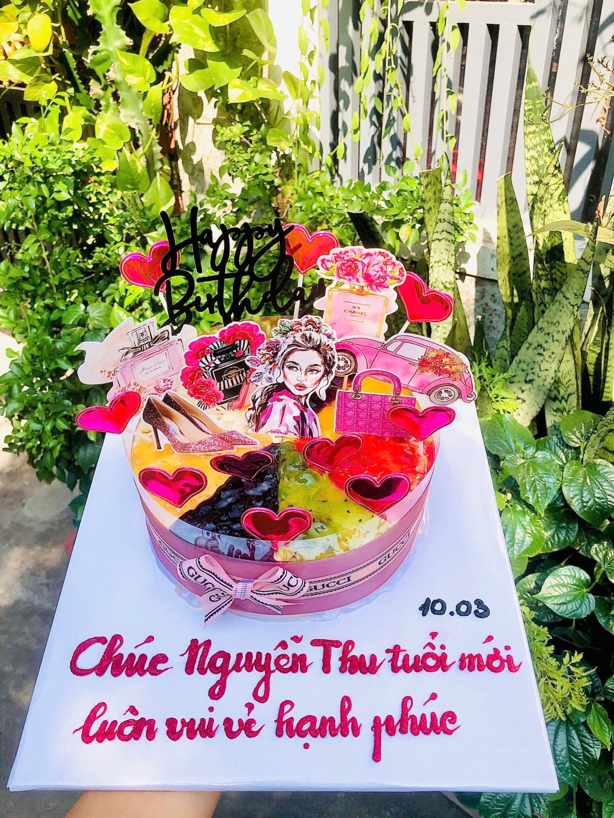 Chủ đề Cô gái + nâng đế ghi nhiều chữ - size 18